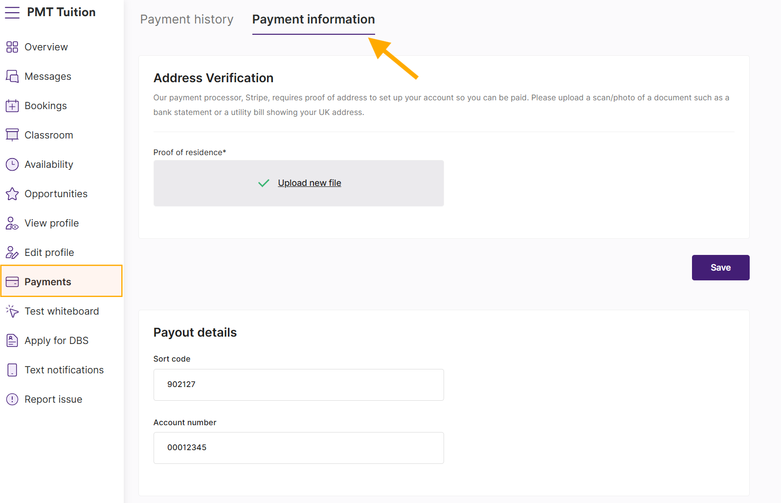 If you realise you’ve made a mistake then you can easily edit your bank details by going to your Payments and navigating to Payment information.