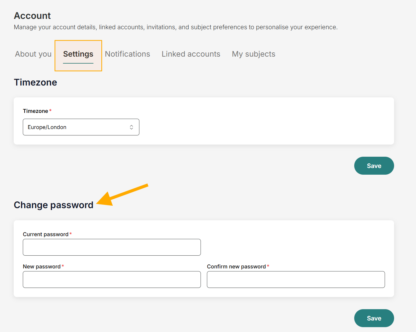 Go to Settings and scroll to Change password