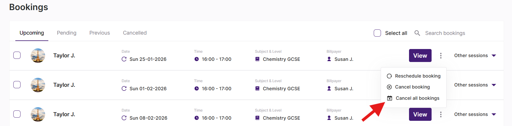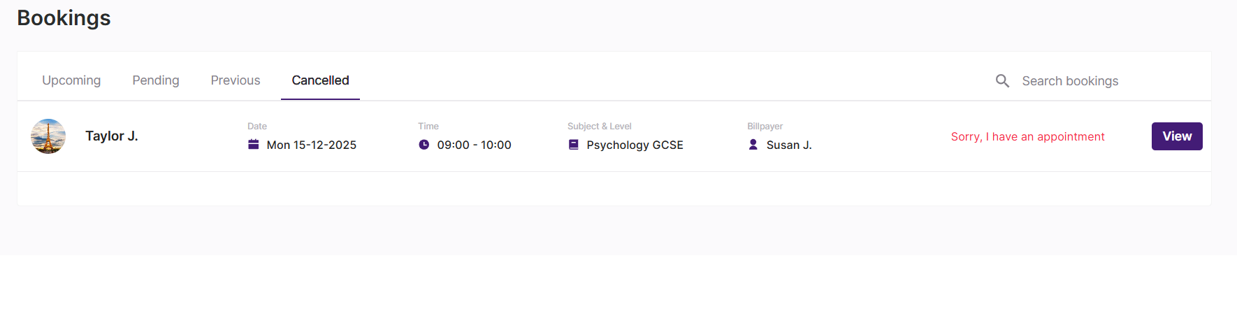Repeatedly cancelling lessons at short notice may negatively affect the ranking of your profile in search results. Where possible, we recommend giving as much notice as you can.