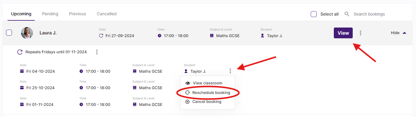 If you need to change a scheduled lesson, you can either reschedule or cancel it directly from your dashboard. The steps below explain how each option works, including what happens for single lessons and recurring bookings.