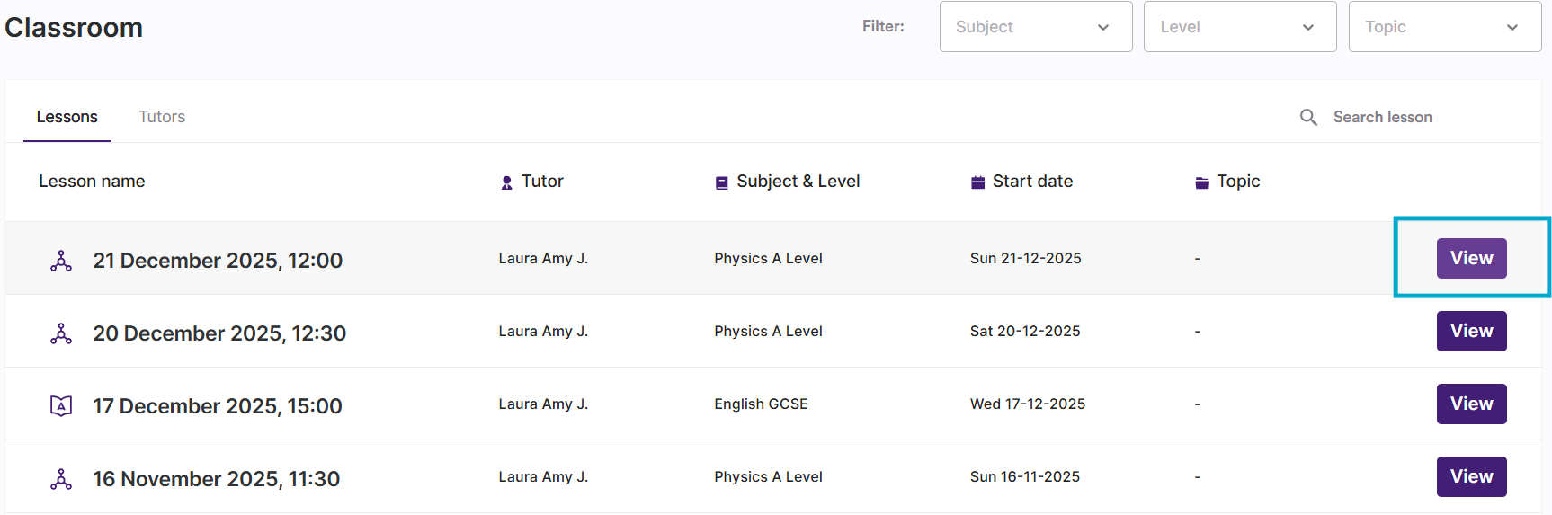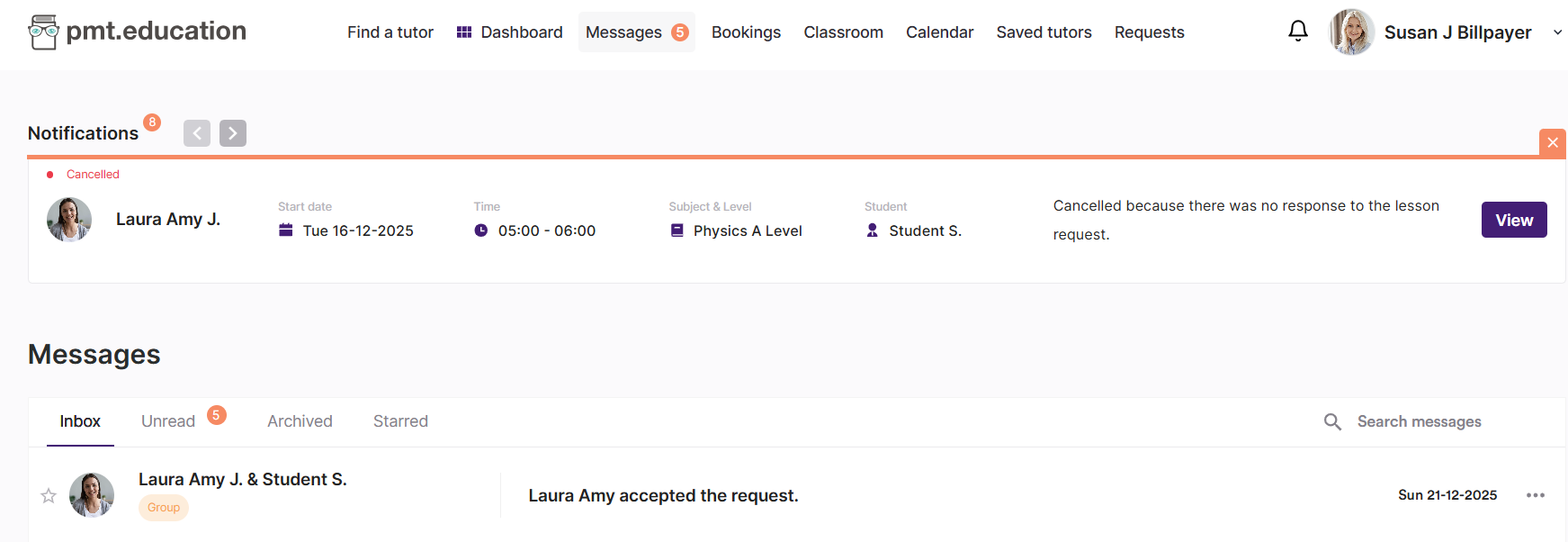 The private chat, marked with a Private tag, is a one-to-one conversation between the billpayer and the tutor. It’s a useful space for sharing information with your tutor such as questions about lessons or updates that don’t require the student’s involvement- only the billpayer and tutor can see these messages.